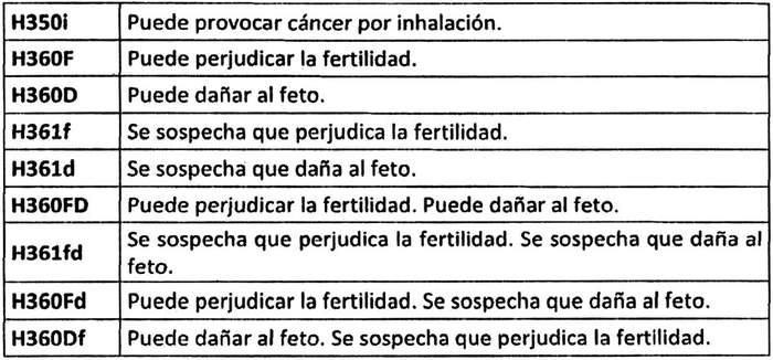 . Clasificación, códigos de indicación de peligro: Estos códigos se indican según lo establecido en el Párrafo III, De las frases de advertencia e indicaciones de peligro, del Título IV, del etiquetado de seguridad de sustancias y mezclas, del DS 57/2019. En algunos casos, se le ha agregado una letra para realizar distinciones complementarias. Estos códigos adicionales se presentan en la Tabla Nº 2