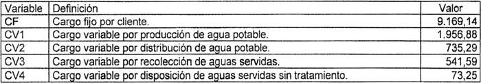 Si el prestador realiza el tratamiento de aguas servidas el cargo CV4 se incrementará en 3.272,51 pesos por metro cúbico.
