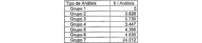 Los valores a cobrar serán: Cargo * IN7, de acuerdo a las siguientes tablas: