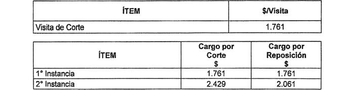 El prestador podrá cobrar por concepto de corte y reposición del suministro a usuarios morosos los siguientes cargos en las instancias que se indican: