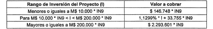 Donde I corresponde al monto total de la construcción del proyecto, en pesos.