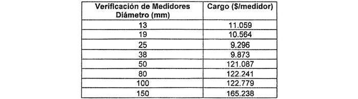 El prestador podrá cobrar por concepto de verificación de medidores el Cargo * IN10 de acuerdo a los siguientes valores: