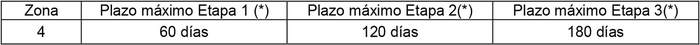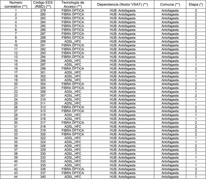 (*) En número de referencia a la Etapa corresponde a la fase en cuyo plazo máximo deberá prestarse el Servicio de Conectividad en los EES que pertenecen a la Zona 4 conforme a lo indicado en el resuelvo octavo de la resolución exenta Nº 433, de fecha 01.03.2021, de la Subsecretaría de Telecomunicaciones.