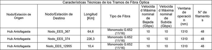 1.1 Instalar, operar y explotar los siguientes tramos de Fibra Óptica, correspondientes a la red de transporte, según se indica a continuación: