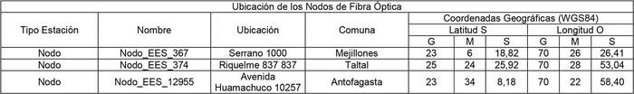 (*) Los nodos anteriormente individualizados corresponden a puntos de concentración ubicados en determinados EES y, desde este punto se derivan enlaces de Fibra Óptica hacia los demás EES según su ubicación geográfica y según la tecnología declarada en la tabla del numeral primero del presente decreto.