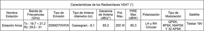 1.3 Para la red de acceso a los EES a implementarse a través de radioenlaces satelitales VSAT de acuerdo al detalle informado en la tabla del numeral primero de este decreto, tales radioenlaces presentan las siguientes características: