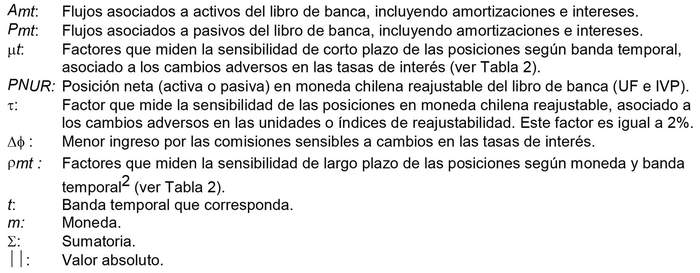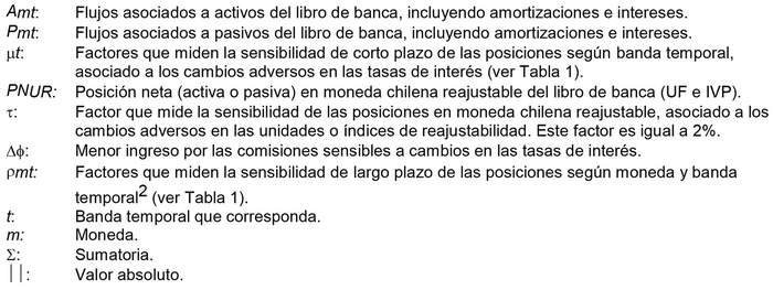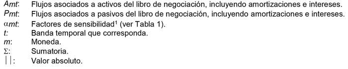 La exposición al riesgo de tasa de interés del libro de negociación corresponderá a la suma de los siguientes componentes, los que se calcularán utilizando los factores señalados en la Tabla 1 para cada moneda e índice de reajustabilidad: