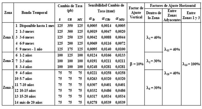 Bandas Temporales, Factores de Sensibilidad y Factores de Ajuste Vertical y Horizontal para el Libro de Negociación