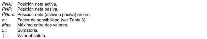 De acuerdo con lo señalado en los párrafos previos, la exposición al riesgo de monedas se medirá por la siguiente relación:
