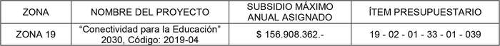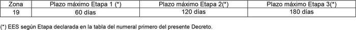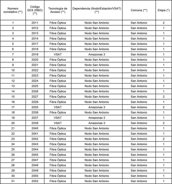 (*) En número de referencia a la Etapa corresponde a la fase en cuyo plazo máximo deberá prestarse el Servicio de Conectividad en los EES que pertenecen a la Zona 19 conforme a lo indicado en el resuelvo octavo de la resolución exenta Nº 432, de fecha 01.03.2021, de la Subsecretaría de Telecomunicaciones.