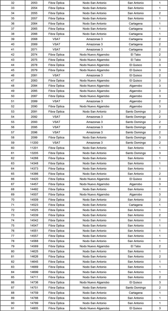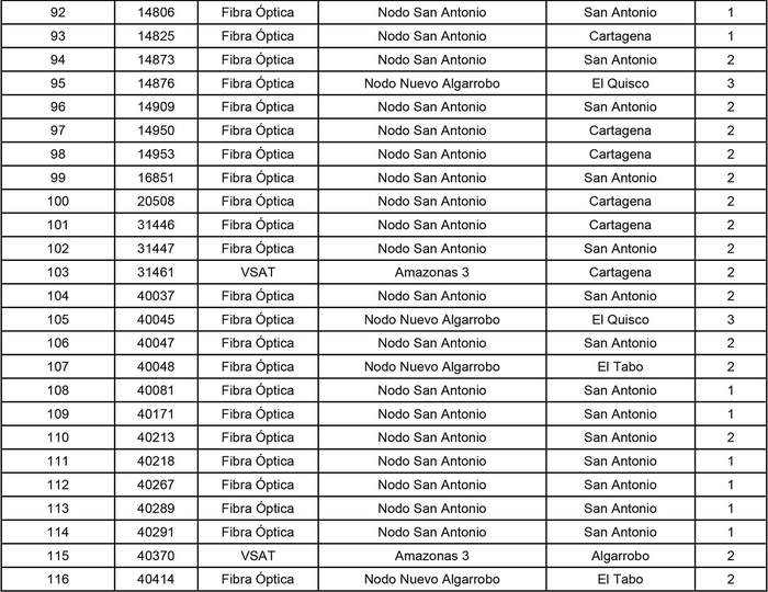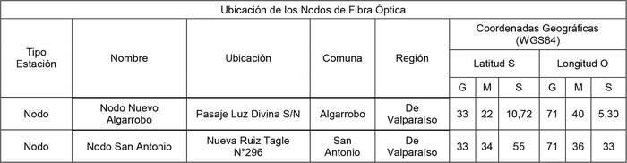 1.3 Instalar, operar y explotar los siguientes Nodos de Fibra Óptica, correspondientes a la red de acceso, según se indica a continuación: