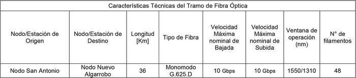 1.2 Instalar, operar y explotar el siguiente tramo de Fibra Óptica, correspondientes a la red de transporte, según se indica a continuación: