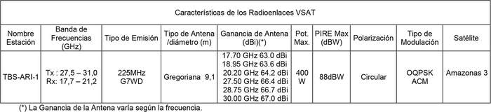 1.4 Para la red de acceso a los EES a implementarse a través de radioenlaces satelitales VSAT acuerdo al detalle informado en la tabla del numeral primero de este decreto, tales radioenlaces presentan las siguientes características.