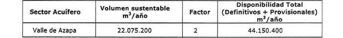 Tabla 1. Oferta de recursos hídricos (Volumen Sustentable) sector Valle de Azapa.