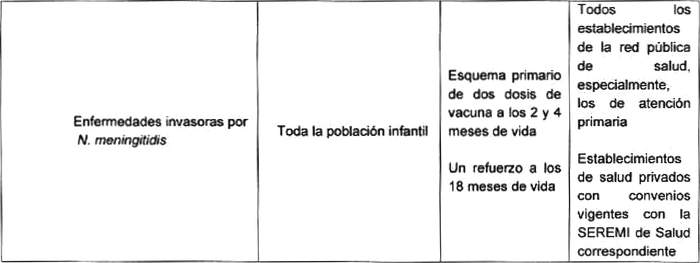 El numeral 1 del artículo primero del Decreto 27 Exento, Salud, publicado el 30.06.2023, modifica la presente norma en el sentido de reemplazar el numeral 14 de la tabla de Vacunación Obligatoria contra Enfermedades Inmunoprevenibles de la Población del País, que hace referencia a las enfermedades invasoras por N. meningitidis, por el que la citada norma indica.