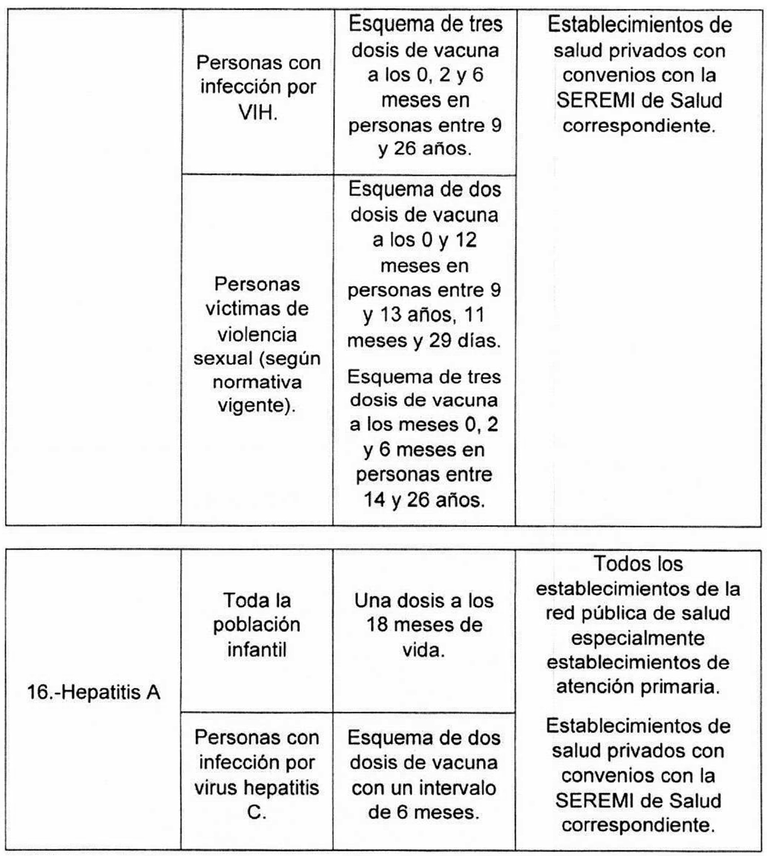 El numeral 1 del Decreto 32 Exento, Salud, publicado el 29.05.2025, modifica la presente norma en el sentido de reemplazar en el numeral 10 "Hepatitis B", la población objetivo "Personas con diagnóstico de Insuficiencia Renal Crónica (IRC)" por "Personas con diagnóstico de Enfermedad Renal Crónica (ERC) Etapa 4".