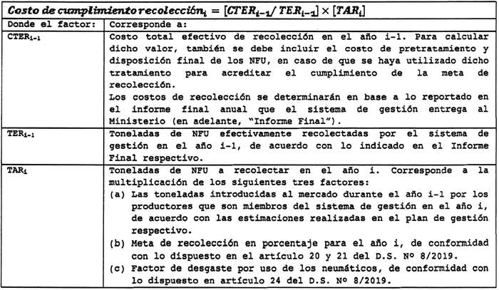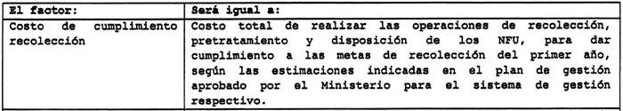Tabla 5: "Costo de cumplimiento recolección" para sistemas de gestión que hayan operado el año anterior