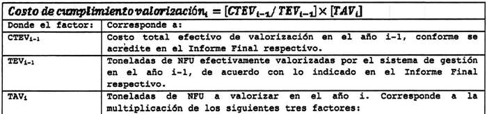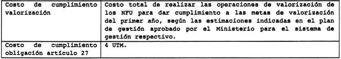 Tabla 6: "Costo de cumplimiento valorización" para sistemas de gestión que hayan operado el año anterior