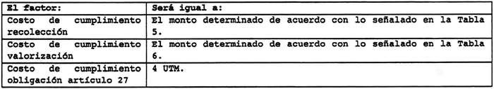 Los costos de cumplimiento se determinarán en función de lo señalado en la Tabla 3.