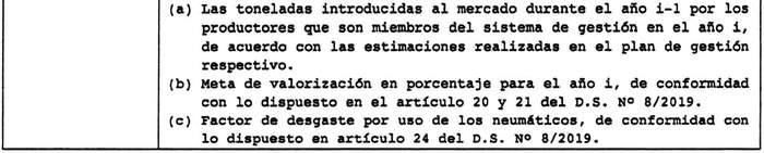 10. Que, con fecha 20 de enero de 2021, se publicó en el Diario Oficial el decreto supremo N° 8, de 2019, del Ministerio del Medio Ambiente, que establece metas de recolección y valorización y otras obligaciones asociadas de neumáticos ("DS N° 8/2019"). En particular, en su artículo 18, establece que los sistemas colectivos de gestión deberán presentar una garantía con el fin de asegurar el cumplimiento de las metas y obligaciones asociadas, la que se hará efectiva en caso de incumplimiento de las mismas.