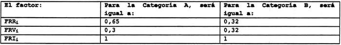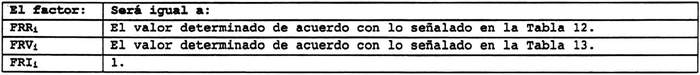 En caso de que la aplicación de alguna de las fórmulas de las Tablas 12 o 13 dé como resultado un valor inferior a 0,15, se fijará el valor del factor de riesgo respectivo en 0,15.
