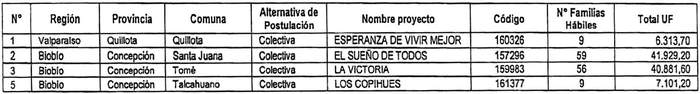 a. Reemplázase en la tabla inserta en su Resuelvo 2., construcción en sitio propio, su fila N° 1, 2, 3 y 5, por las siguientes: