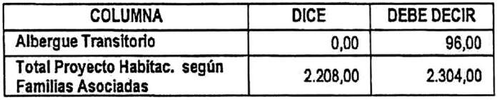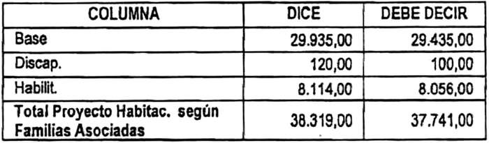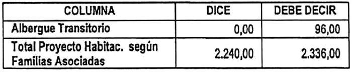 c. Reemplázase en la tabla inserta en su Resuelvo 3., construcción en sitio propio, su fila N° 2, por la siguiente: