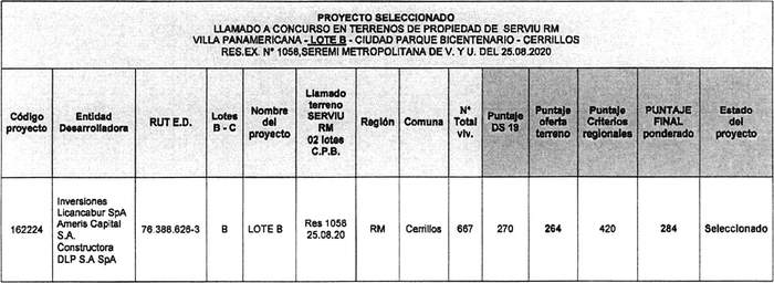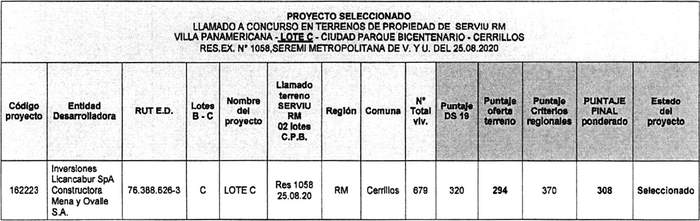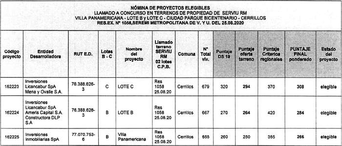 3. La resolución exenta Nº 64 de fecha 26 de enero 2021, modificada en lo pertinente por la Res. Ex. Nº 246, de fecha 3 de marzo de 2021, ambas de esta Secretaría Ministerial, que aprueban nómina de proyectos seleccionados del llamado a postulación en condiciones especiales de proyectos habitacionales del DS Nº 19 (V. y U.) para la Villa Panamericana, en terrenos de propiedad del Serviu Metropolitano ubicados en Ciudad Parque Bicentenario de la comuna de Cerrillos.