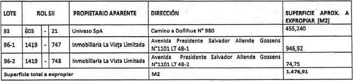Superficie aproximada inmuebles a expropiar: 1.476,91 metros cuadrados.