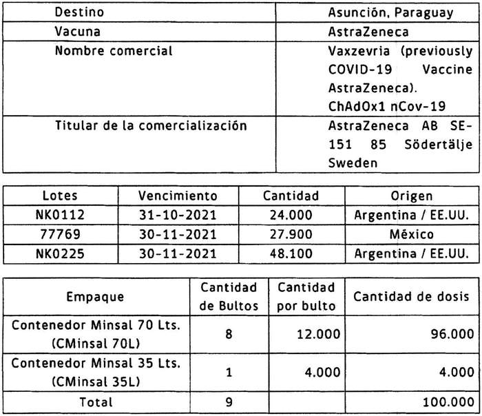 10. Que, la República del Paraguay mediante carta de fecha 30 de septiembre de 2021 comunicó la aceptación de las dosis ofrecidas por nuestro país.