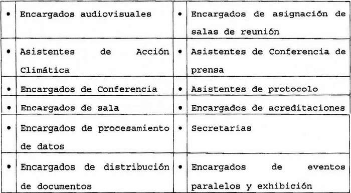 .Equipo principal de la CMNUCC: 24 pasajeros