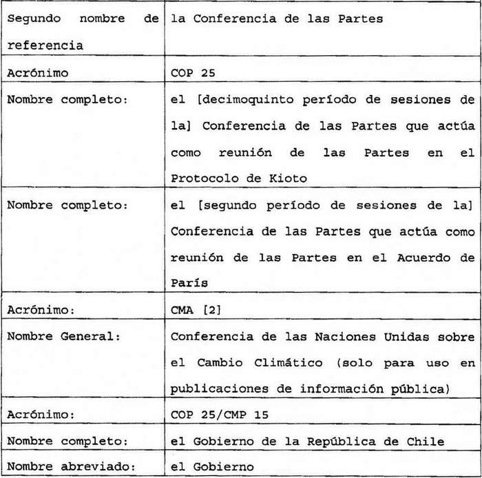 El Gobierno de la República de Chile (en adelante, "el Gobierno"), representado por la Ministra del Medio Ambiente, y la secretaría de la Convención Marco de las Naciones Unidas sobre el Cambio Climático, el Protocolo de Kioto y el Acuerdo de París (en adelante, "la secretaría"), representada por su Secretaria Ejecutiva (en adelante "la Secretaria Ejecutiva");