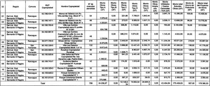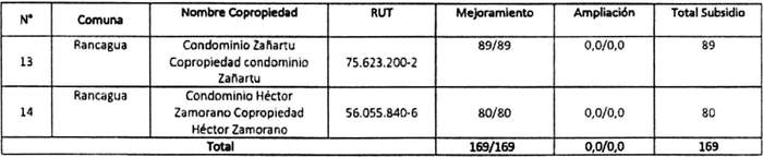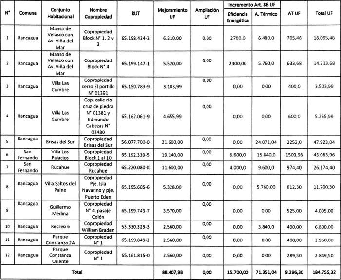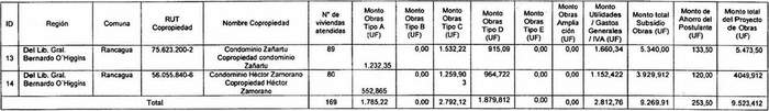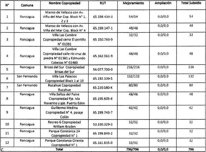 Los numerales 1 y 2 de la Resolución 715 Exenta, Vivienda, publicada el 27.09.2022, modifican las tablas referidas a Postulación Comunidad de Copropietarios de Condominios Sociales y Copropietarios de Condominios Sociales de los resuelvos 1 y 2 de la presente norma, respectivamente, en los términos que la citada resolución indica