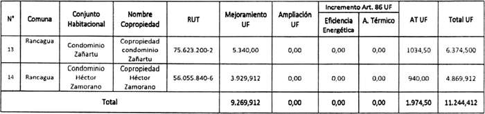 Los literales a. y b. del numeral 2 de la Resolución 1183 Exenta, Vivienda, publicada el 30.12.2021, modifican las tablas referidas a Postulación Comunidad de Copropietarios de Condominios Sociales y Copropietarios de Condominios Sociales de los resuelvos 1 y 2 de la presente norma, respectivamente, en el sentido que la citada norma indica.