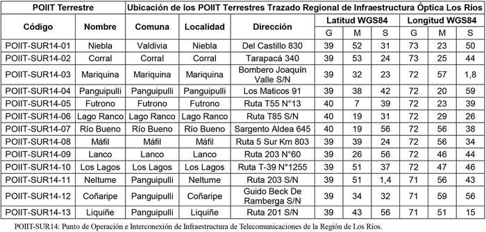 3.2 Ubicación de los POIIT Terrestres del Trazado Regional de Infraestructura Óptica Los Ríos.