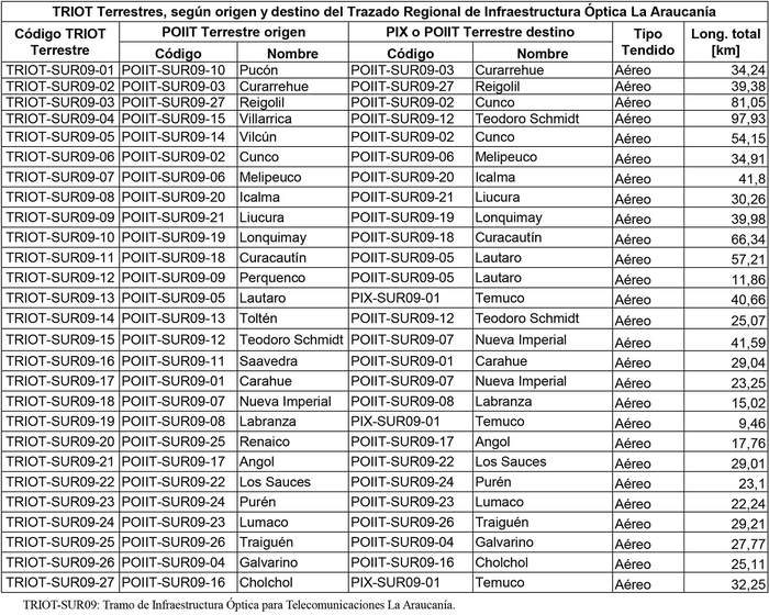 5.1 Características de los TRIOT Terrestres del Trazado Regional de Infraestructura Óptica la Araucanía.