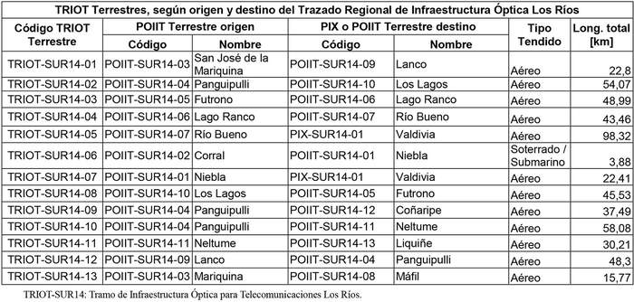 5.2 Características de los TRIOT Terrestres del Trazado Regional de Infraestructura Óptica Los Ríos.
