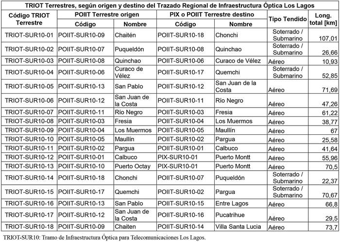 5.3 Características de los TRIOT Terrestres del Trazado Regional de Infraestructura Óptica Los Lagos.