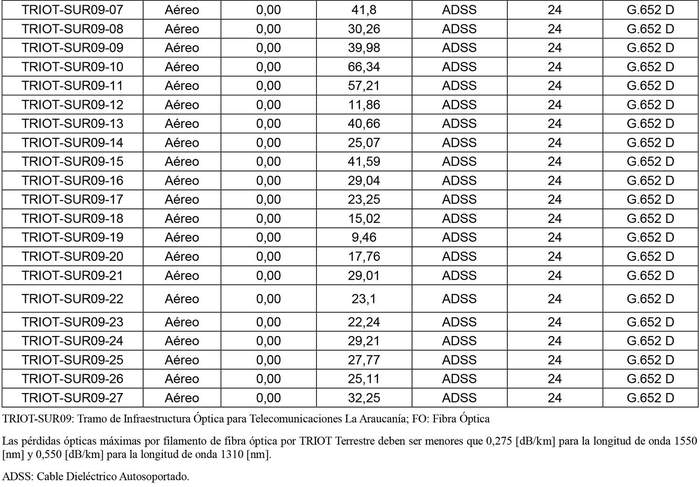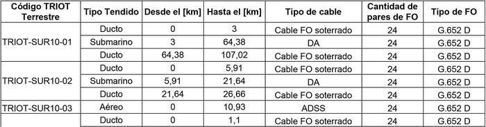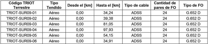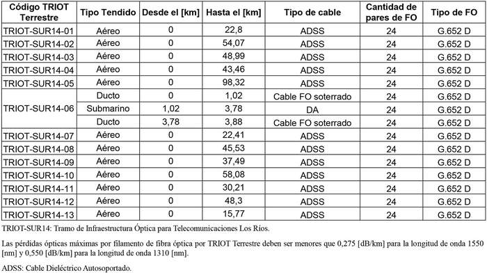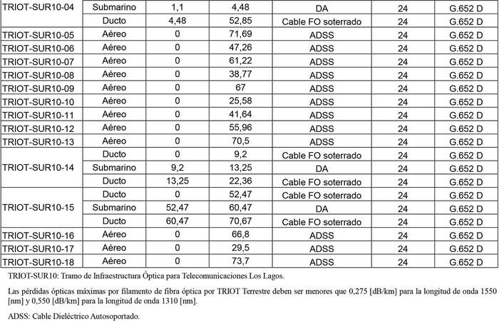 5. Características técnicas de los TRIOT Terrestres de los respectivos Trazados Regionales de Infraestructura Óptica de la Macrozona Sur.