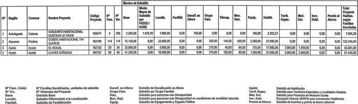 El detalle de los recursos comprometidos por concepto de subsidio base y subsidios complementarios para los proyectos seleccionados en el presente resuelvo y que por este acto se asignan, se informa en la nómina que se adjunta como anexo y forma parte integrante de la presente resolución.