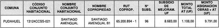 ASIGNA DIRECTAMENTE SUBSIDIOS HABITACIONALES DEL PROGRAMA DE MEJORAMIENTO DE VIVIENDAS Y BARRIOS, REGULADO POR EL DS Nº 27 (V. Y U.), DE 2016, CAPÍTULO TERCERO, PARA EL CONDOMINIO DE VIVIENDAS, SANTIAGO AMENGUAL B1 DEL CONJUNTO SANTIAGO AMENGUAL, DE LA COMUNA DE PUDAHUEL, REGIÓN METROPOLITANA