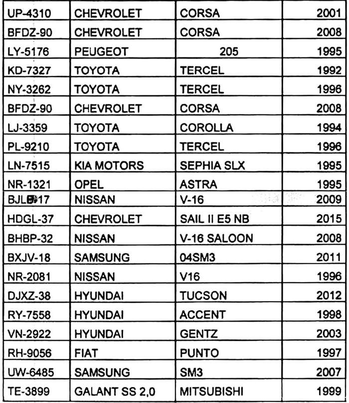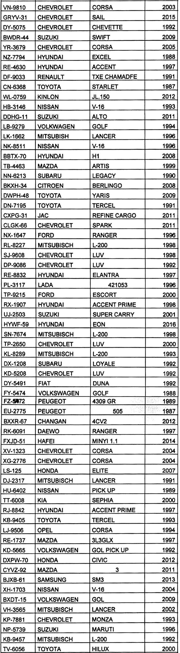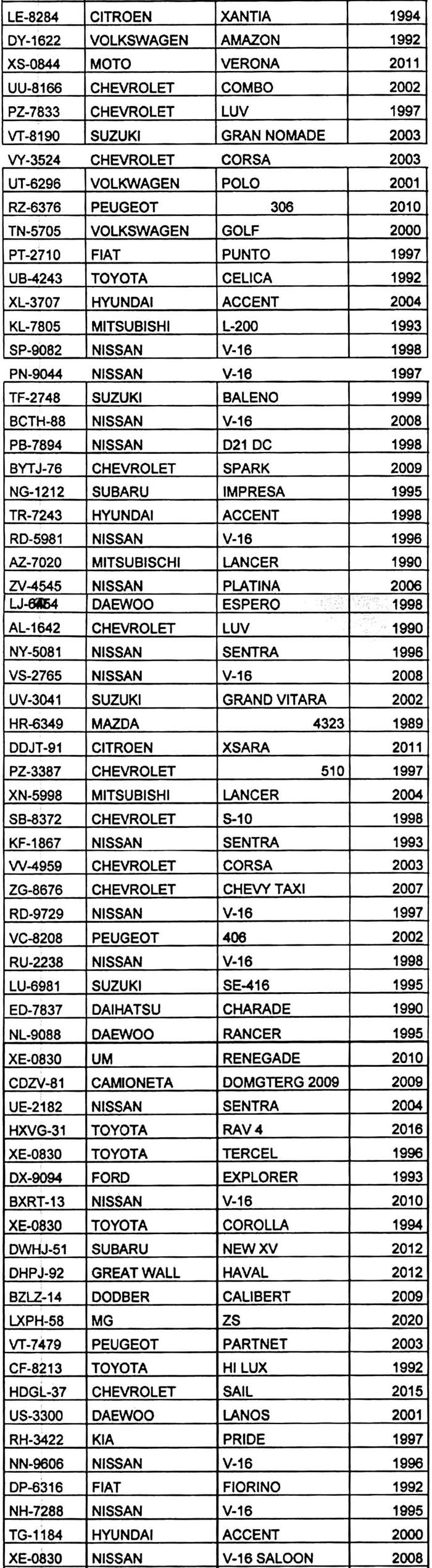 2.- El listado de vehículos emitido por la Dirección de Tránsito y Transporte Público de la Municipalidad de Castro.