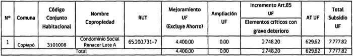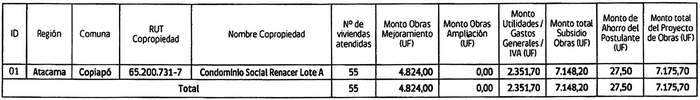 Nómina de Comunidades de Copropietarios Seleccionadas, DS Nº 27/2016, Capítulo Tercero.