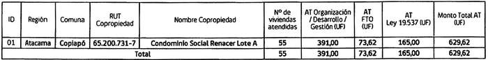 4. Impútese el monto total de 7.777,82 Unidades de Fomento asignados en esta resolución, de las cuales 7.148,20 Unidades de Fomento corresponden a subsidio directo, y 629,62 Unidades de Fomento corresponden a Asistencia Técnica, a los recursos autorizados a la Región de Atacama, para el Programa de Mejoramiento de Viviendas y Barrios del año 2021, para Condominios Viviendas.