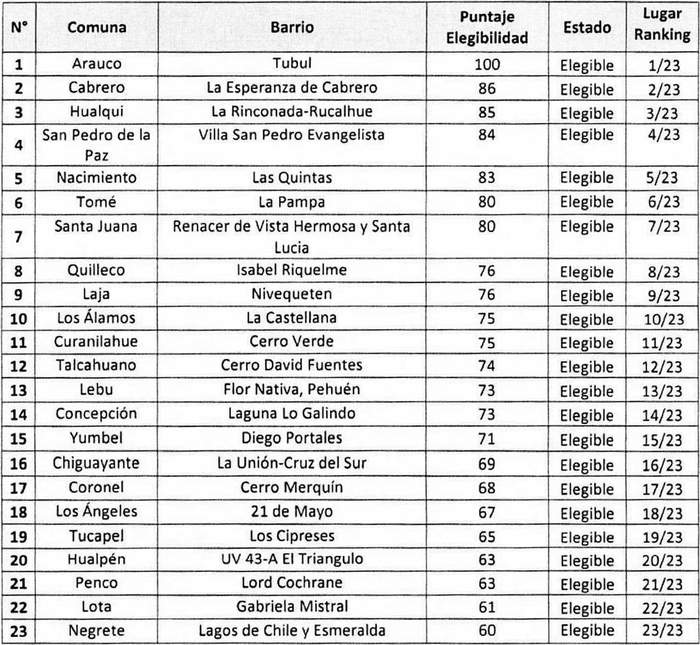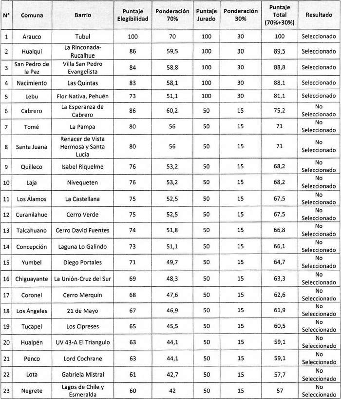 SELECCIONA PROPUESTAS DE NUEVOS BARRIOS PARA LA EJECUCIÓN DEL PROGRAMA DE RECUPERACIÓN DE BARRIOS EN LA REGIÓN DEL BIOBÍO A CONTAR DEL AÑO 2022