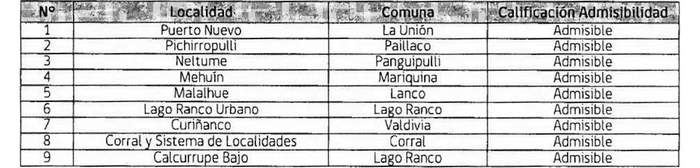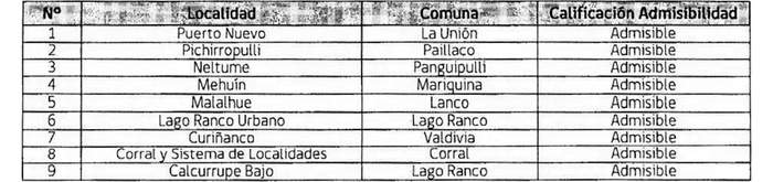 4. Que, dicho examen de admisibilidad fue desarrollado por la Encargada Regional del Programa, a saber Graciela Soto San Martín, siendo comunicados el resultado de este examen a los municipios que presentaron propuestas, a través de ordinarios individualizados en los literales j), k), l), m), n), o), p), q) y r) de los vistos. Las propuestas realizadas por las Entidades Municipales de la Región de Los Ríos declarados admisibles corresponden a los siguiente:
