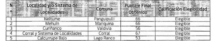6. Selecciónese, para la ejecución del Programa para Pequeñas Localidades, la propuesta de la localidad Mehuín, de la comuna de Mariquina.