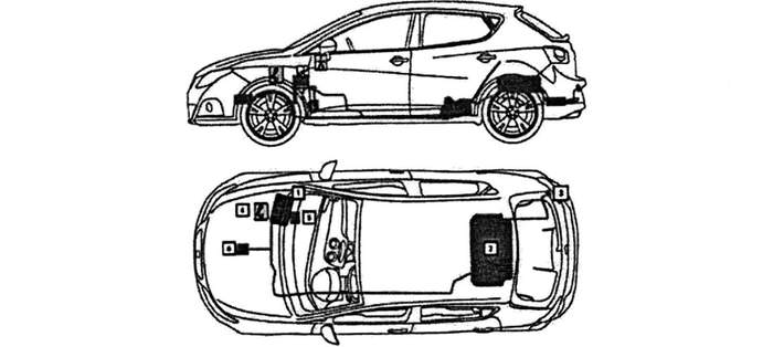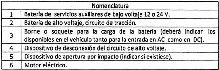 En lo que respecta al Diagrama Sistema de Alto Voltaje del Vehículo deberá presentar las baterías, elementos de corte y protección de la energía, y el trazado del circuito de alto voltaje en el vehículo. Deben ser dos vistas, una vista lateral y una de planta, según esquema siguiente: