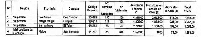 3. El monto del subsidio asignado de conformidad con el cuadro del resuelvo 2. de esta resolución comprende los siguientes valores por concepto de Servicios de Asistencia Técnica, de Labores de Fiscalización Técnica de Obra y pago de Aranceles al Conservador de Bienes Raíces: