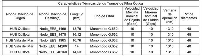 (*) Los nodos anteriormente individualizados corresponden a puntos de concentración ubicados en determinados EES y desde este punto se derivan enlaces de Fibra Óptica hacia los demás EES según su ubicación geográfica y según la tecnología declarada en la tabla del numeral primero del presente decreto.